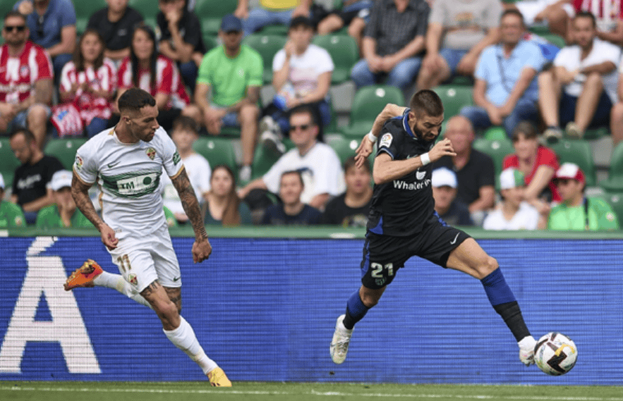 埃尔切本赛季以“铁桶阵”闻名西甲,其场均控球率虽仅列联赛下游,但防守端展现出极强的纪律性。球队擅长通过密集站位压缩对手进攻空间,尤其在中路区域形成多层拦截网,迫使对手频繁将球分至边路传中——而这一战术的直接效果是,其场均争顶成功率高居联赛第三,高空球防守堪称铜墙铁壁。然而,过度依赖防守的代价是进攻端创造力不足,场均射门次数与关键传球数均处于联赛倒数,反击时往往因出球速度慢而错失良机。